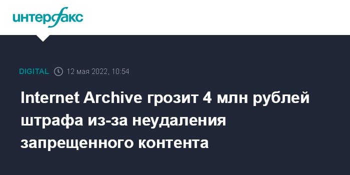 Internet Archive грозит 4 млн рублей штрафа из-за неудаления запрещенного контента