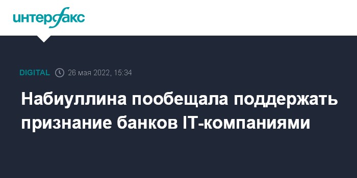 Москва. 26 мая. INTERFAX.RU - Банк России поддерживает признание банков IT-компаниями, будет продолжать работу с правительством по этому направлению, заявила глава ЦБ Эльвира Набиуллина. Она сообщила об этом на ежегодной встречи руководства ЦБ с банкирами, организованной Ассоциацией банков России (АБР).