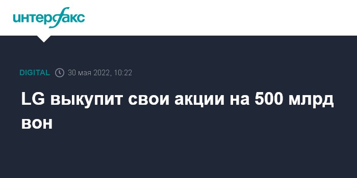 Москва. 30 мая. INTERFAX.RU - Южнокорейская LG Corp. объявила, что намерена выкупить собственные акции и снять ограничение на дивидендные выплаты, чтобы повысить доходы акционеров. Об этом сообщает Market Watch.