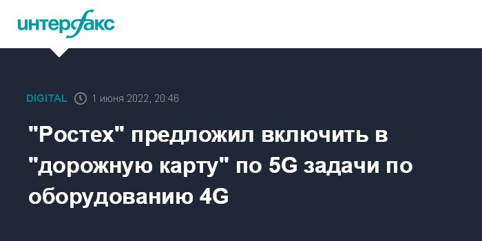 "Дорожная карта" по развитию 5G была утверждена президиумом правкомиссии по цифровому развитию в ноябре 2020 года, "Ростех" стал ее соисполнителем в части создания российского оборудования 5G.