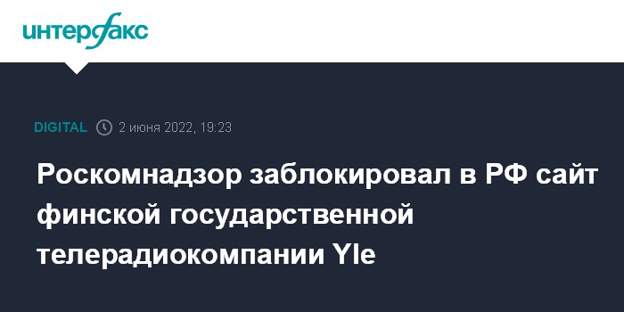 Москва. 2 июня. INTERFAX.RU - Роскомнадзор по требованию Генпрокуратуры заблокировал в России сайт финской государственной телерадиокомпании Yle, следует из данных ведомства.