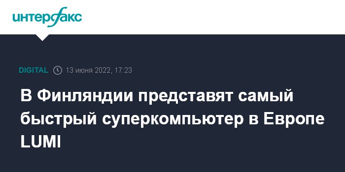 "Европейское совместное предприятие по высокопроизводительным вычислениям" (EuroHPC) представляет новейший суперкомпьютер LUMI. Он базируется в Каяани в Финляндии. LUMI - это самый быстрый и самый эффективный с точки зрения энергопотребления суперкомпьютер в Европе, он занял третью позицию в мире по скорости вычислений", - говорится в коммюнике, распространенном Европейской комиссией.