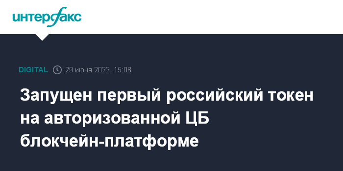 Запущен первый российский токен на авторизованной ЦБ блокчейн-платформе