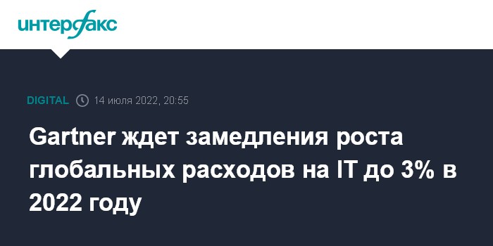 Москва. 14 июля. INTERFAX.RU - Мировые расходы на информационные технологии (ИТ) по итогам 2022 года увеличатся на 3% и превысят $4,5 трлн, прогнозирует исследовательская компания Gartner Inc. В 2021 году они повысились на 10,1% - до $4,4 трлн.