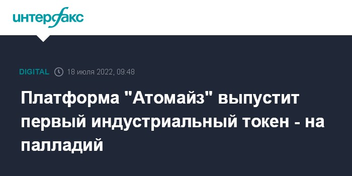 Платформа "Атомайз" выпустит первый индустриальный токен - на палладий