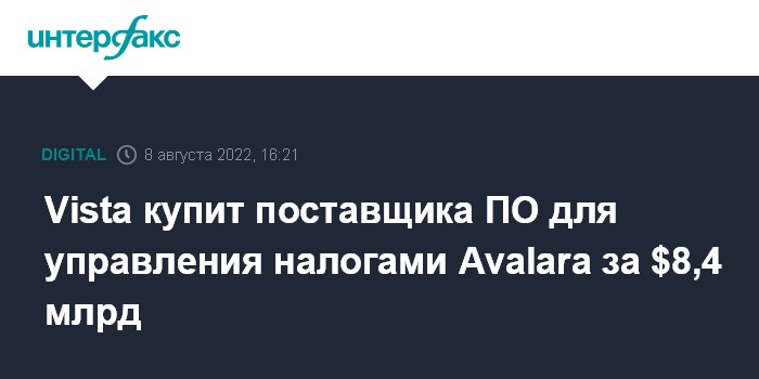 Vista купит поставщика ПО для управления налогами Avalara за $8,4 млрд