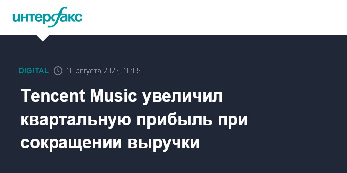 Москва. 16 августа. INTERFAX.RU - Tencent Music Entertainment Group (TME), владеющая крупнейшим в Китае музыкальным стриминговым сервисом, увеличила чистую прибыль во втором квартале 2022 года на 3,5%, несмотря на снижение выручки почти на 14%.