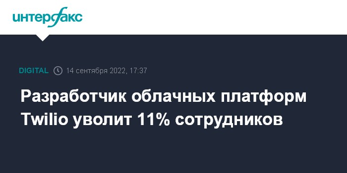 Москва. 14 сентября. INTERFAX.RU - Американский разработчик "облачных" платформ и сервисов Twilio Inc. планирует сократить штат на 11% в рамках масштабной реорганизации бизнеса,сообщает CNBC со ссылкой на документы компании, направленные Комиссии по ценным бумагам и биржам (SEC).