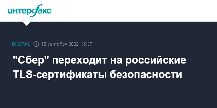 Москва. 15 сентября. INTERFAX.RU - Онлайн-сервисы "Сбера" начали переход на российские TLS-сертификаты, сообщает пресс-служба Минцифры РФ, чей сервис по выдаче соответствующих сертификатов был запущен на Госуслугах.