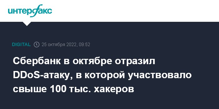 Сбербанк в октябре отразил DDoS-атаку, в которой участвовало свыше 100 тыс. хакеров