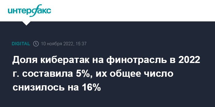 Доля кибератак на финотрасль в 2022 г. составила 5%, их общее число снизилось на 16%