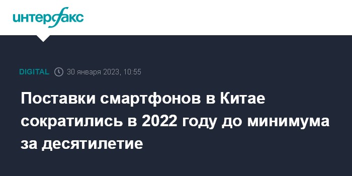 Поставки смартфонов в Китае сократились в 2022 году до минимума за десятилетие