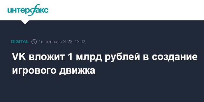 Москва. 15 февраля. INTERFAX.RU - Интернет-компания VK инвестирует 1 млрд рублей в разработку базовой версии игрового движка (ПО для разработки игр), сообщил на пресс-конференции руководитель компании Владимир Кириенко.