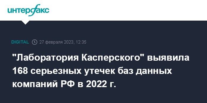 "Лаборатория Касперского" выявила 168 серьезных утечек баз данных компаний РФ в 2022 г.