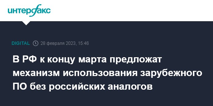 "До конца марта Минцифры даст предложения по вариантам (использования такого ПО - ИФ). Мы говорим про случаи вынужденного использования ПО до перехода на российские аналоги. То есть мы должны отрегулировать эти условия", - сказал министр.