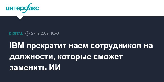 Москва. 2 мая. INTERFAX.RU - Американская International Business Machines Corp. (IBM) планирует остановить наем сотрудников на должности, которые, по ее мнению, в ближайшие годы могут быть заменены искусственным интеллектом (ИИ), заявил Bloomberg гендиректор компании Арвинд Кришна.