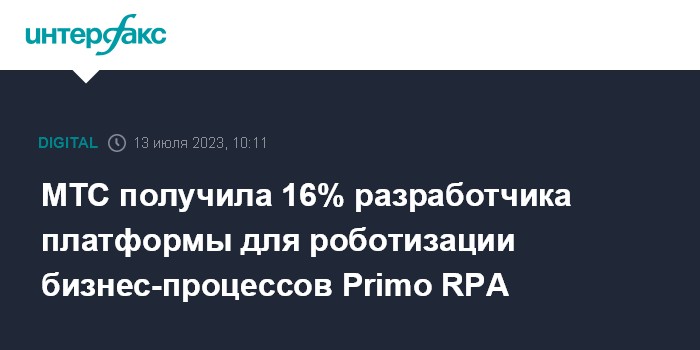 МТС получила 16% разработчика платформы для роботизации бизнес-процессов Primo RPA