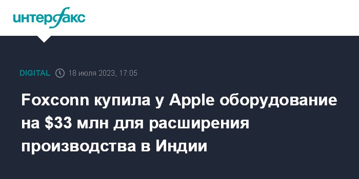 По сообщению Foxconn, ее индийская "дочка" закупила оборудование у Apple Operations Ltd. для производственных нужд.