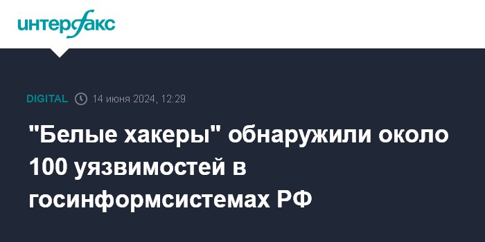 Москва. 14 июня. INTERFAX.RU - Около сотни уязвимостей, большинство из которых низкой степени критичности, обнаружено с ноября 2023 года в ходе второго этапа программы багбаунти (bug bounty) - поиска уязвимостей "белыми хакерами" - в государственных информационных системах (ГИС), сообщило Минцифры.