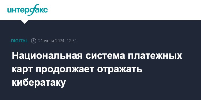 Москва. 21 июня. INTERFAX.RU - Национальная система платежных карт (НСПК, оператор карт "Мир") второй день продолжает отражение кибератаки, сервисы компании на данный момент работают в обычном режиме, сообщили "Интерфаксу" в пресс-службе НСПК.