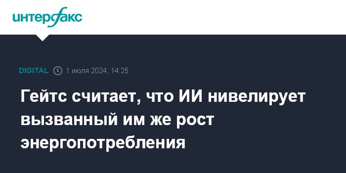 Москва. 1 июля. INTERFAX.RU - Сооснователь корпорации Microsoft, советник ее главы Билл Гейтс призвал власти и защитников окружающей среды "не перебарщивать" с опасениями из-за масштабных потребностей технологий искусственного интеллекта (ИИ) в электроэнергии, пишет Financial Times.