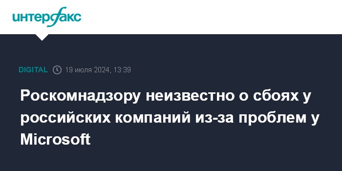 Москва. 19 июля. INTERFAX.RU - Роскомнадзор по состоянию на полдень пятницы не получал данных от российских компаний о том, что у них возникли проблемы в связи с массовым сбоем в работе устройств на операционной системе Windows компании Microsoft, сообщил Центр мониторинга и управления сетью связи общего пользования (ЦМУ ССОП) РКН.