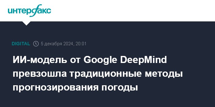 Москва. 5 декабря. INTERFAX.RU - Google DeepMind, дочерняя компания американской Google представила модель прогнозирования погоды с помощью искусственного интеллекта, которая показывает более высокую, чем традиционные методы, точность в прогнозировании погоды на срок до 15 дней и лучше предвидит экстремальные явления.