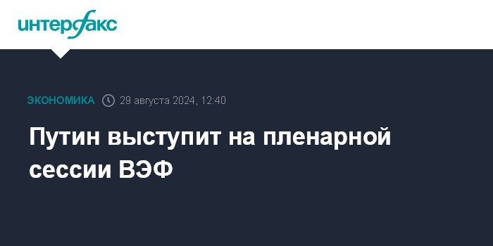 Москва. 29 августа. INTERFAX.RU - Президент РФ Владимир Путин примет участие в Восточном экономическом форуме, который пройдет во Владивостоке с 3 по 6 сентября, выступит на пленарной сессии. Об этом сообщил журналистам пресс-секретарь главы государства Дмитрий Песков.