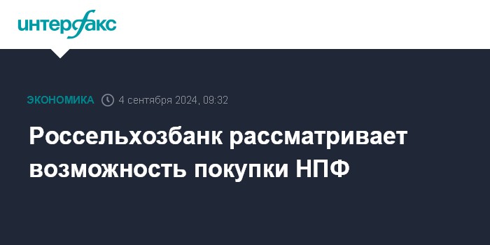 Россельхозбанк рассматривает возможность покупки НПФ