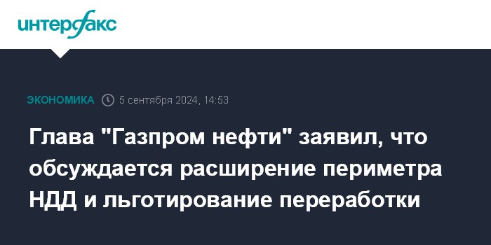 Глава "Газпром нефти" заявил, что обсуждается расширение периметра НДД и льготирование переработки