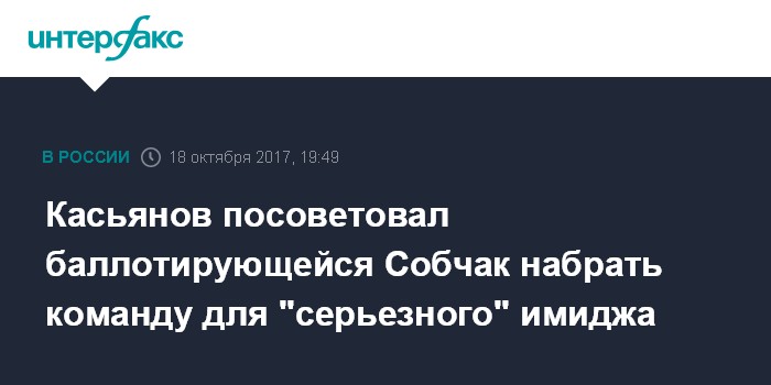 Касьянов посоветовал баллотирующейся Собчак набрать команду для "серьезного" имиджа