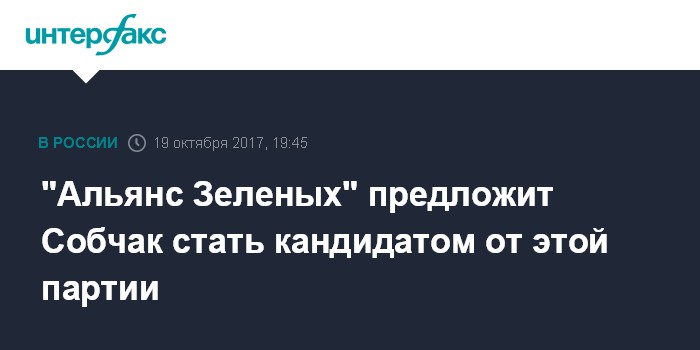 "На заседании Центрального Совета Александр Закондырин (председатель партии - ИФ) выступил с предложением к Ксении Собчак выдвинуться в президенты от "Альянса Зеленых", - сообщили "Интерфаксу" в пресс-службе партии.