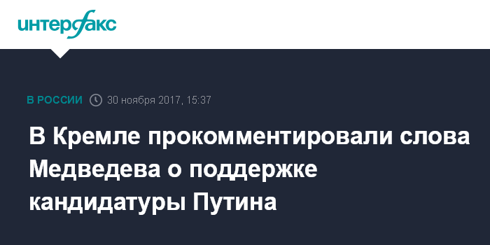 Москва. 30 ноября. INTERFAX.RU - Президент РФ Владимир Путин до сегодняшнего момента нигде не упоминал, намерен ли баллотироваться на предстоящих выборах, заявил пресс-секретарь президента РФ Дмитрий Песков.