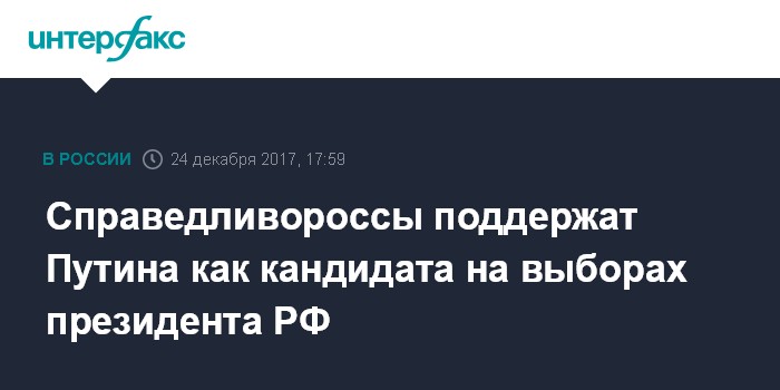 Справедливороссы поддержат Путина как кандидата на выборах президента РФ