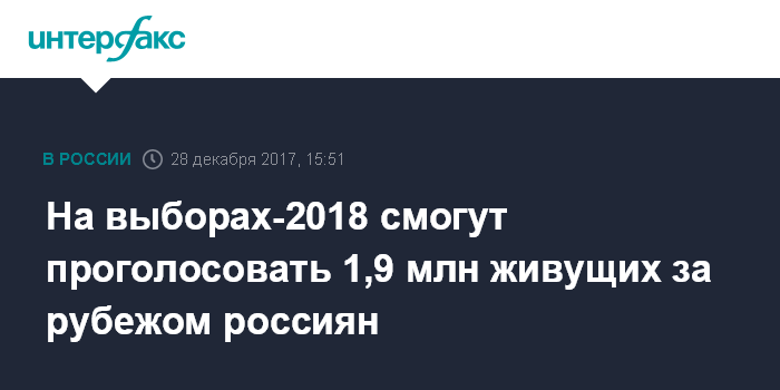 Москва. 28 декабря. INTERFAX.RU - На выборах президента России в 2018 году смогут проголосовать почти 2 миллиона российских граждан, живущих за рубежом, сообщил член ЦИК России Василий Лихачев в четверг на заседании комиссии.