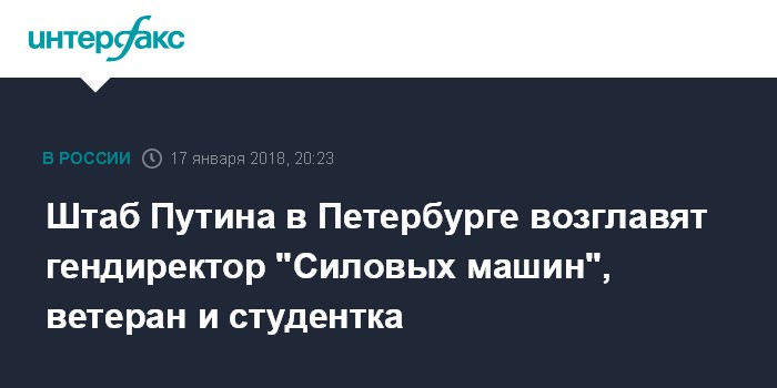Штаб Путина в Петербурге возглавят гендиректор "Силовых машин", ветеран и студентка