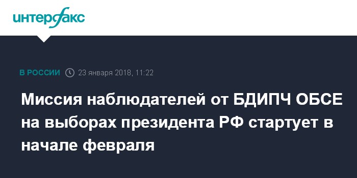 Миссия наблюдателей от БДИПЧ ОБСЕ на выборах президента РФ стартует в начале февраля