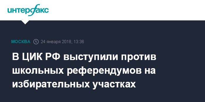 Москва. 24 января. INTERFAX.RU - Глава ЦИК РФ Элла Памфилова выступила против проведения школьных референдумов на избирательных участках.