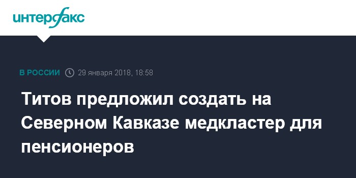 "На Северном Кавказе хорошо было бы создать медицинский кластер, пенсионный - для людей в возрасте. У нас страна большая, на большей части территории климат суровый. Пожилым людям тяжело жить в таком климате - где-нибудь в Якутии или Красноярском крае, особенно когда у них мало родственников", - сказал Титов во время поездки в Дагестан.