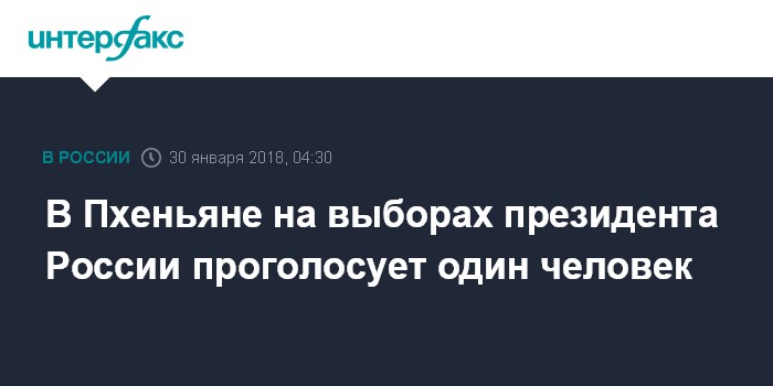 Москва. 30 января. INTERFAX.RU - Избирательный участок для голосования на выборах президента РФ, которые пройдут 18 марта, откроют при консульском отделе российской дипмиссии в северокорейском Пхеньяне, там сможет проголосовать Владимир Ли - единственный гражданин РФ, постоянно проживающий в КНДР.