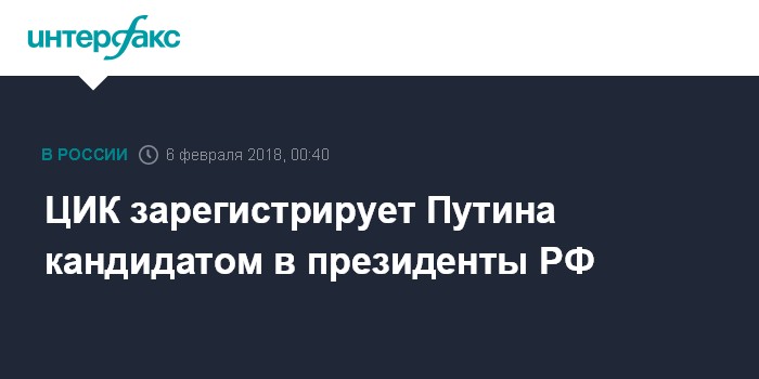 ЦИК зарегистрирует Путина кандидатом в президенты РФ