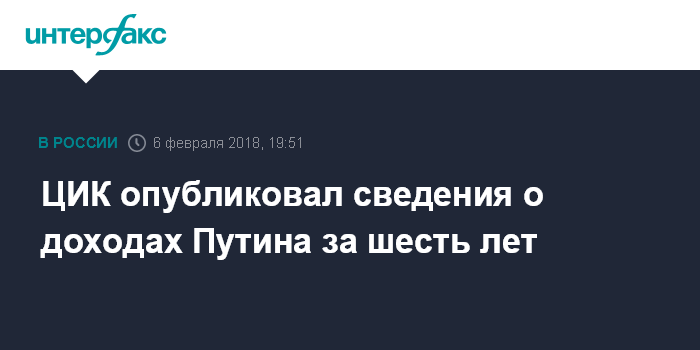 ЦИК опубликовал сведения о доходах Путина за шесть лет