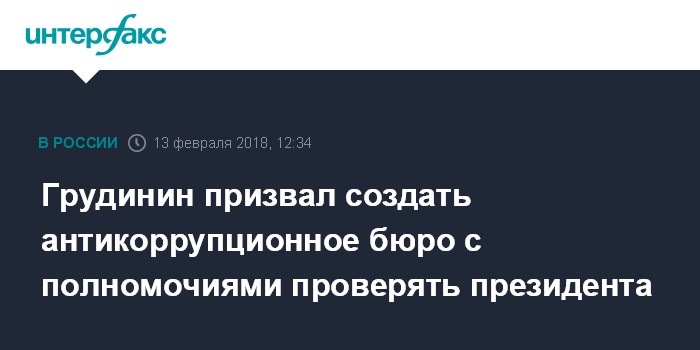Москва. 13 февраля. INTERFAX.RU - Кандидат в президенты РФ Павел Грудинин выступает за создание в РФ Национального антикоррупционного бюро с широкими полномочиями.