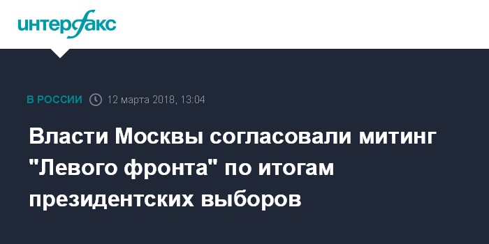 Власти Москвы согласовали митинг "Левого фронта" по итогам президентских выборов