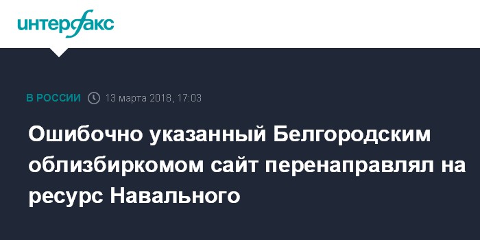 Ошибочно указанный Белгородским облизбиркомом сайт перенаправлял на ресурс Навального