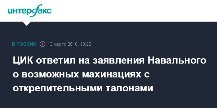 ЦИК ответил на заявления Навального о возможных махинациях с открепительными талонами