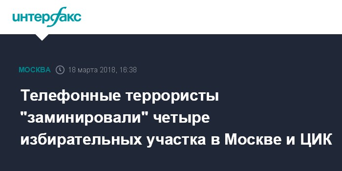 Москва. 18 марта. INTERFAX.RU - Звонки о якобы имевшем место минировании четырех избирательных участков в Москве поступили в воскресенье, сообщил член Мосгоризбиркома Дмитрий Реут.