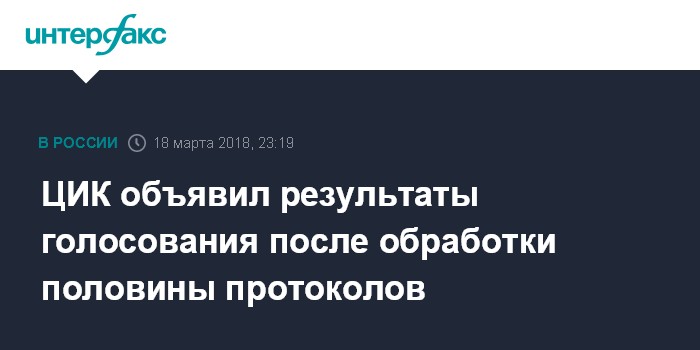 ЦИК объявил результаты голосования после обработки половины протоколов