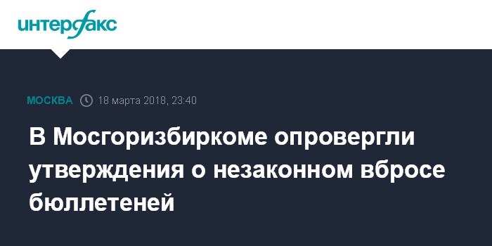 Москва. 18 марта. INTERFAX.RU - Информация, распространяемая в соцсетях, о незаконном вбросе бюллетеней в КОИБы на избирательных участках столицы после их закрытия не соответствует действительности, заявил член Мосгоризбиркома Дмитрий Реут журналистам в воскресенье.