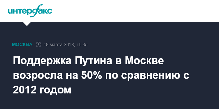 Поддержка Путина в Москве возросла на 50% по сравнению с 2012 годом